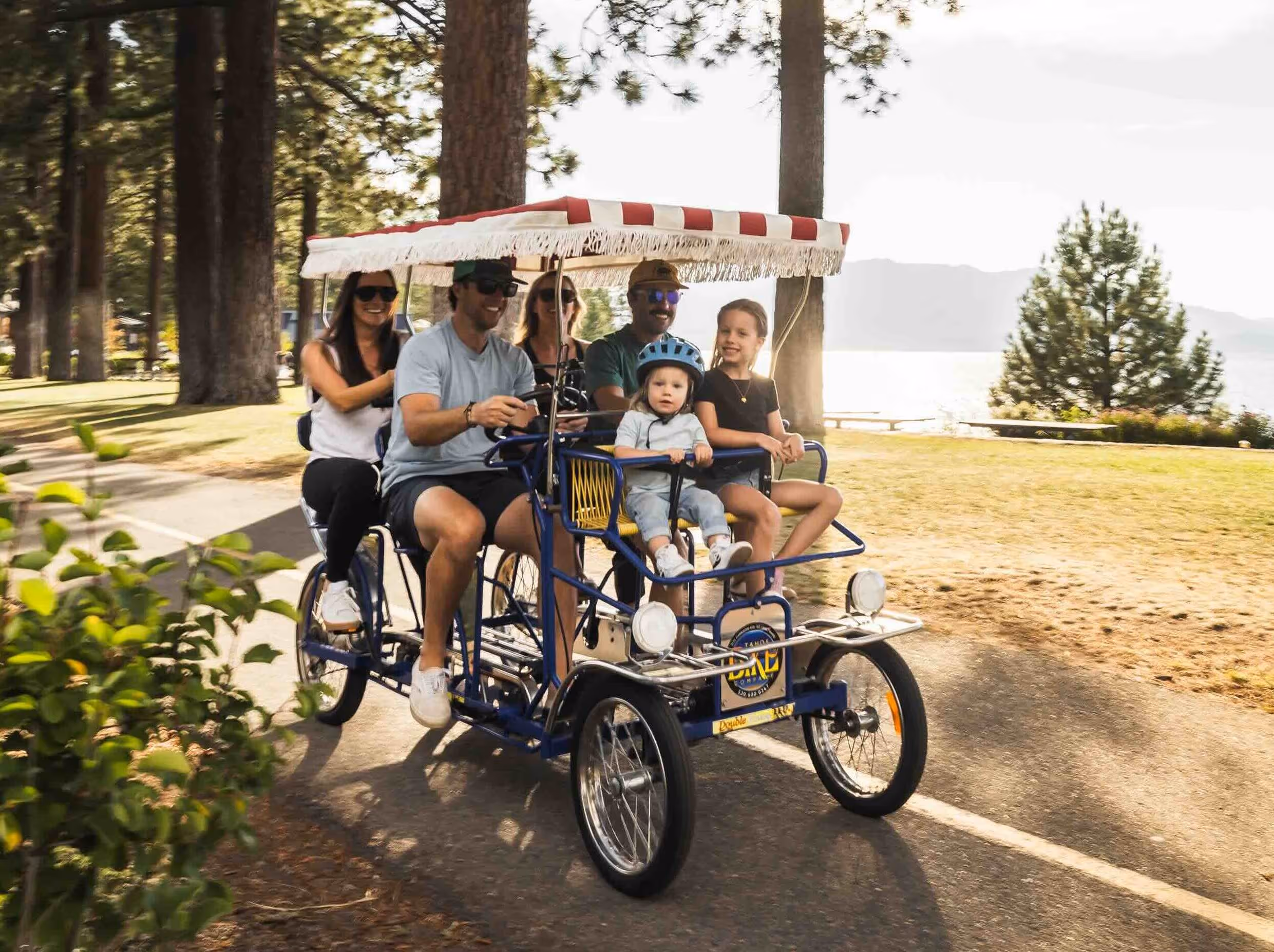 Make memories with family or friends with a surrey bike rental nearSouth Lake Tahoe’s lakefront boardwalks and parks