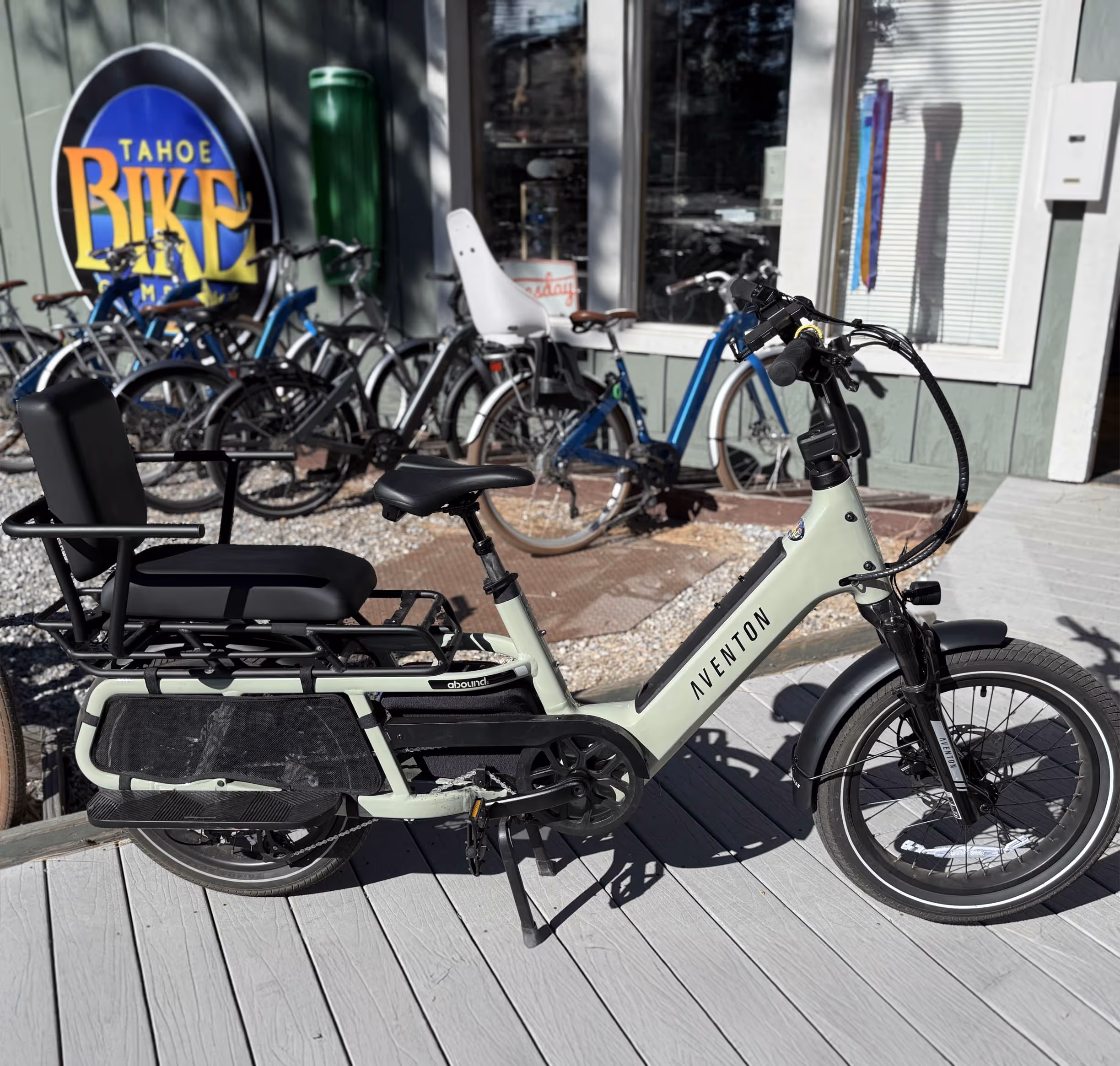NEW! Our Aventon Level 3 fat-tire cargo e-bikes are built to handle it all — from hauling gear to carrying a passenger in comfort. The powerful motor and wide tires make every ride stable and smooth, whether you’re cruising along the lake or tackling Tahoe’s rolling paths. With pedal assist or a simple twist of the throttle, you’ll enjoy effortless acceleration and extra boost whenever you need it — perfect for fun, convenient rides around town or along scenic trails.
